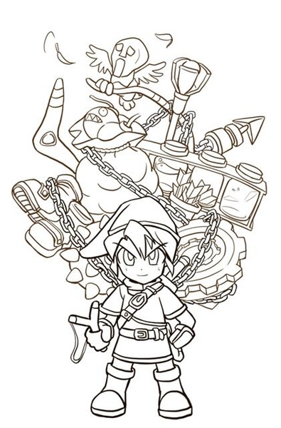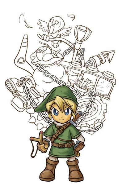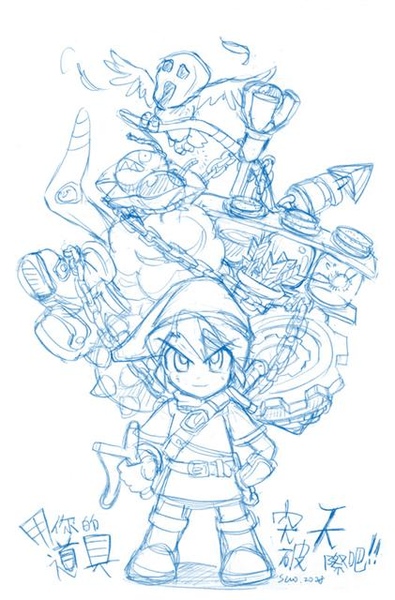 這次畫Zelda-道具滿載,想到可能需要,就紀錄了一下繪圖過程。因為是比較漫畫式地上線稿、上色,才敢留下過程;換作西畫,自己都不知道會畫多久、畫怎樣了,哪敢紀錄啊XDStep1:鉛筆掃描